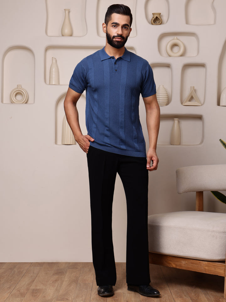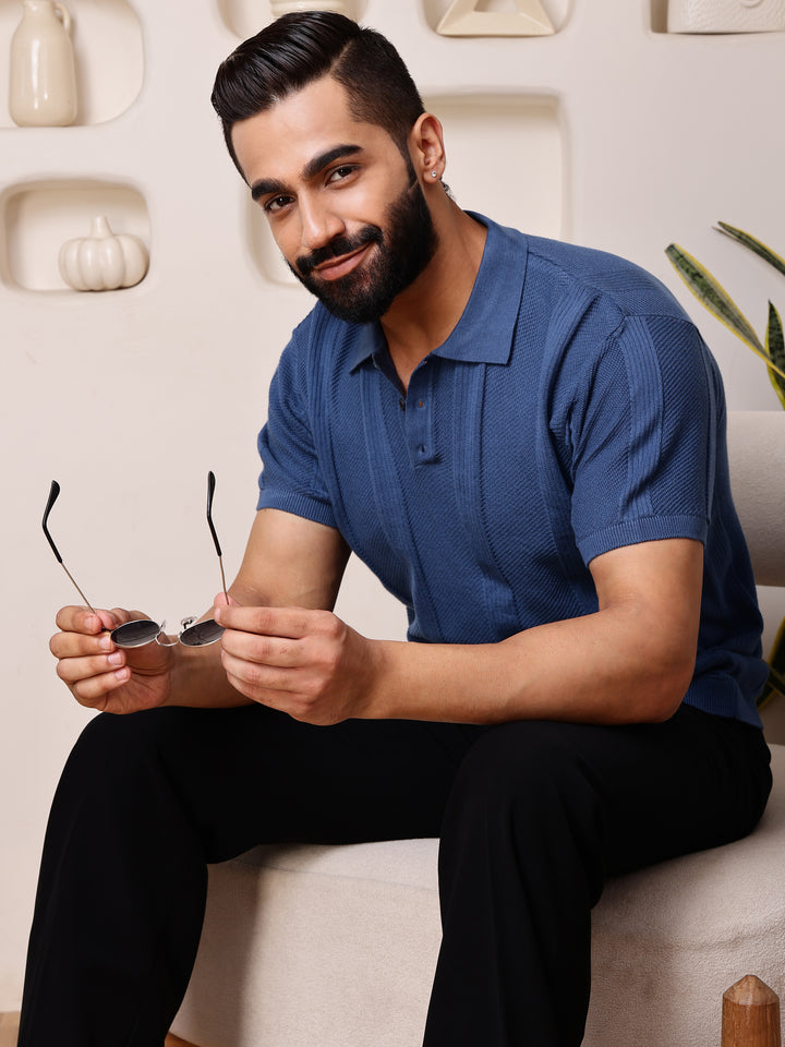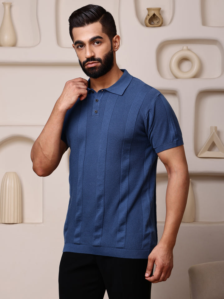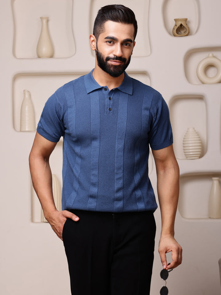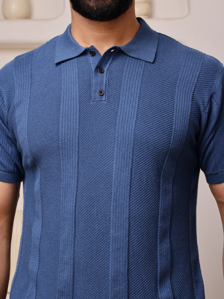 Vogue93 Collar Half Sleeve Knitted Polo Steel Blue Matrix