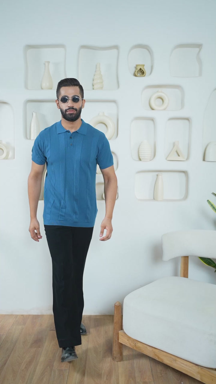 This Vogue93 Collar Half Sleeve Knitted Polo in Steel Blue Matrix offers a refined blend of comfort and style. Crafted with a knitted fabric, it ensures breathability and a soft touch, ideal for all-day wear. The half sleeve design provides ease of movement, while the steel blue matrix color adds a sophisticated, modern edge to your wardrobe. Perfect for casual or semi-formal occasions, this polo combines expert tailoring with versatile appeal.