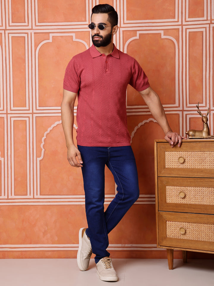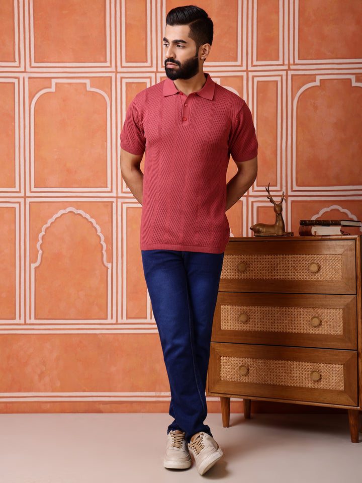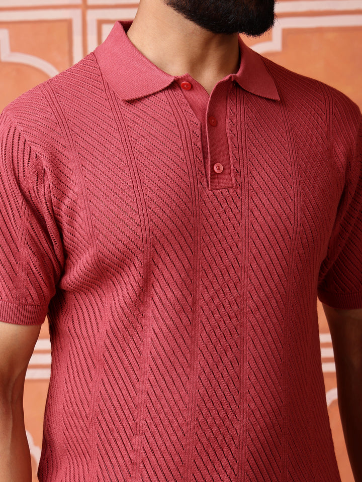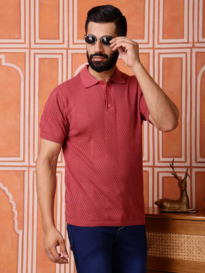 This Vogue93 knitted polo features a warm carrot color and a textured finish, combining style with comfort. Designed with a classic collar and half sleeves, it offers a refined look suitable for casual and semi-formal occasions. The knit fabric ensures breathability and a soft touch, making it an ideal choice for year-round wear.